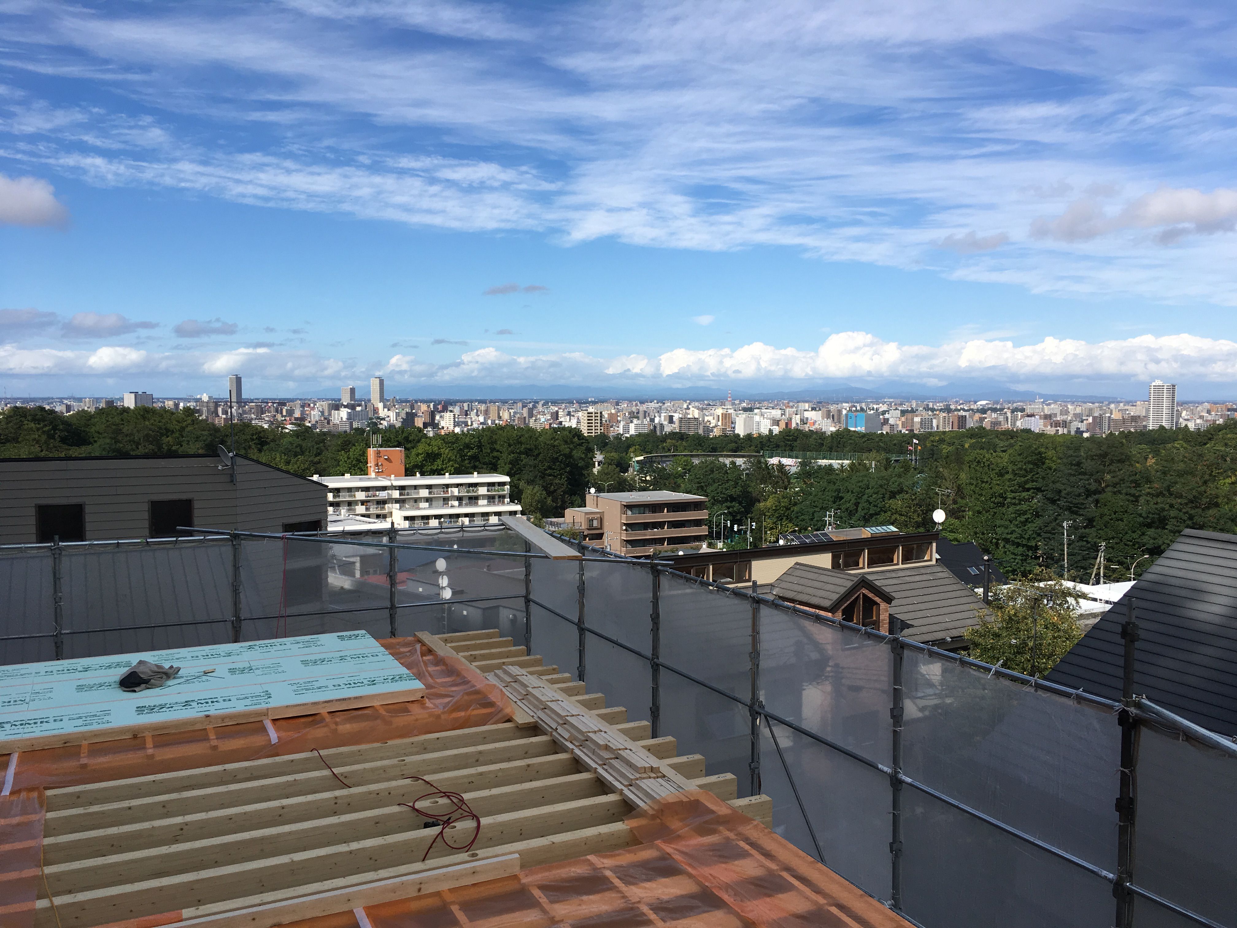ここ何日かは秋晴れの日が続いてますが、たまに突然の雨が降ったりすることもあり、やはりこの時期は天候が不安定ですね。 そんな中、建て方の作業を進めています現場もだいぶ形になってきました。 …
