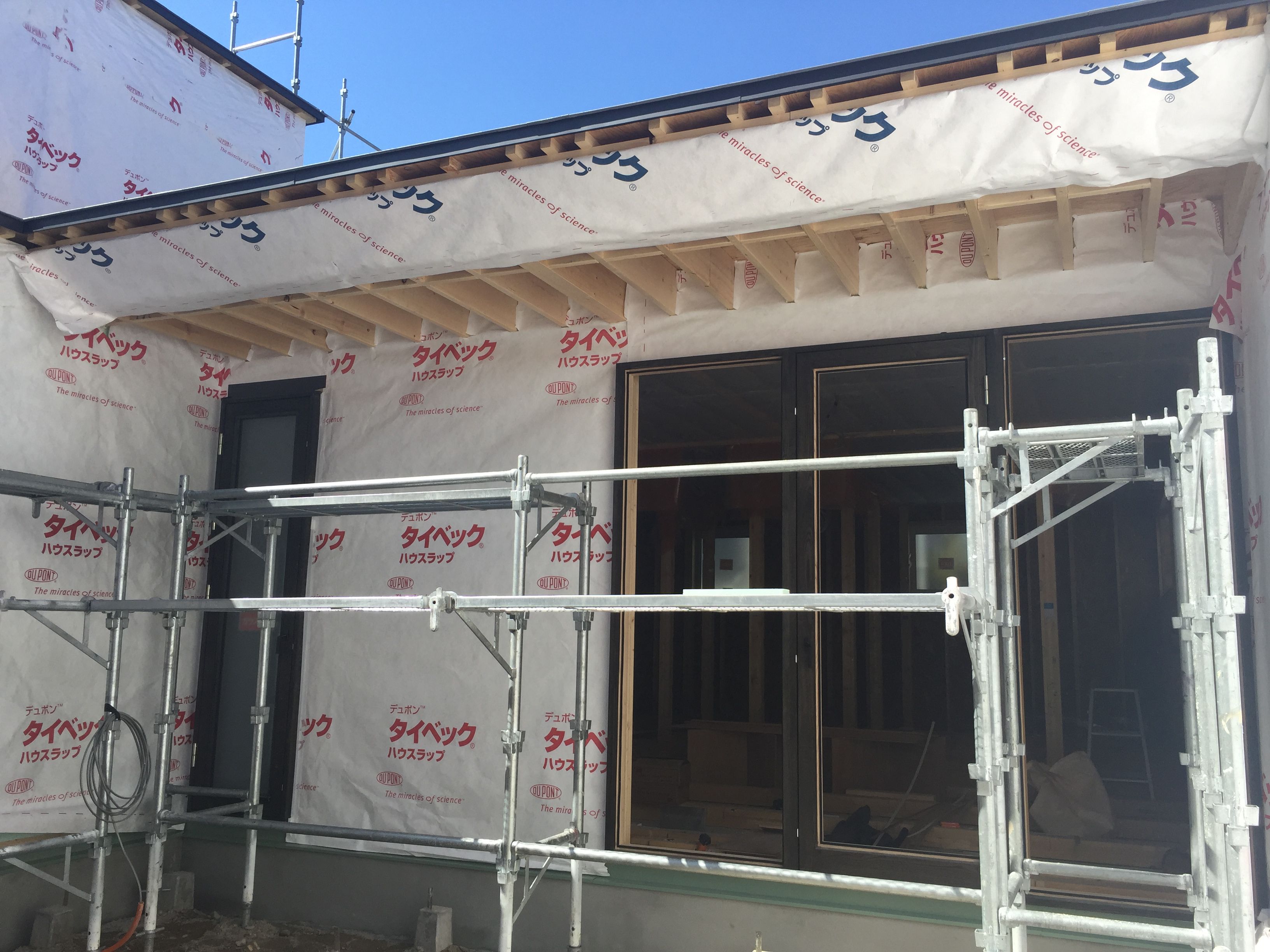 札幌も桜の開花が発表されました! 3月末より建て始めている現場も順調に進んでいます。 屋根工事も完了し、現在は窓の取付を行なっています。樹脂サッシと木製サッシを使い分けているのですが、G…