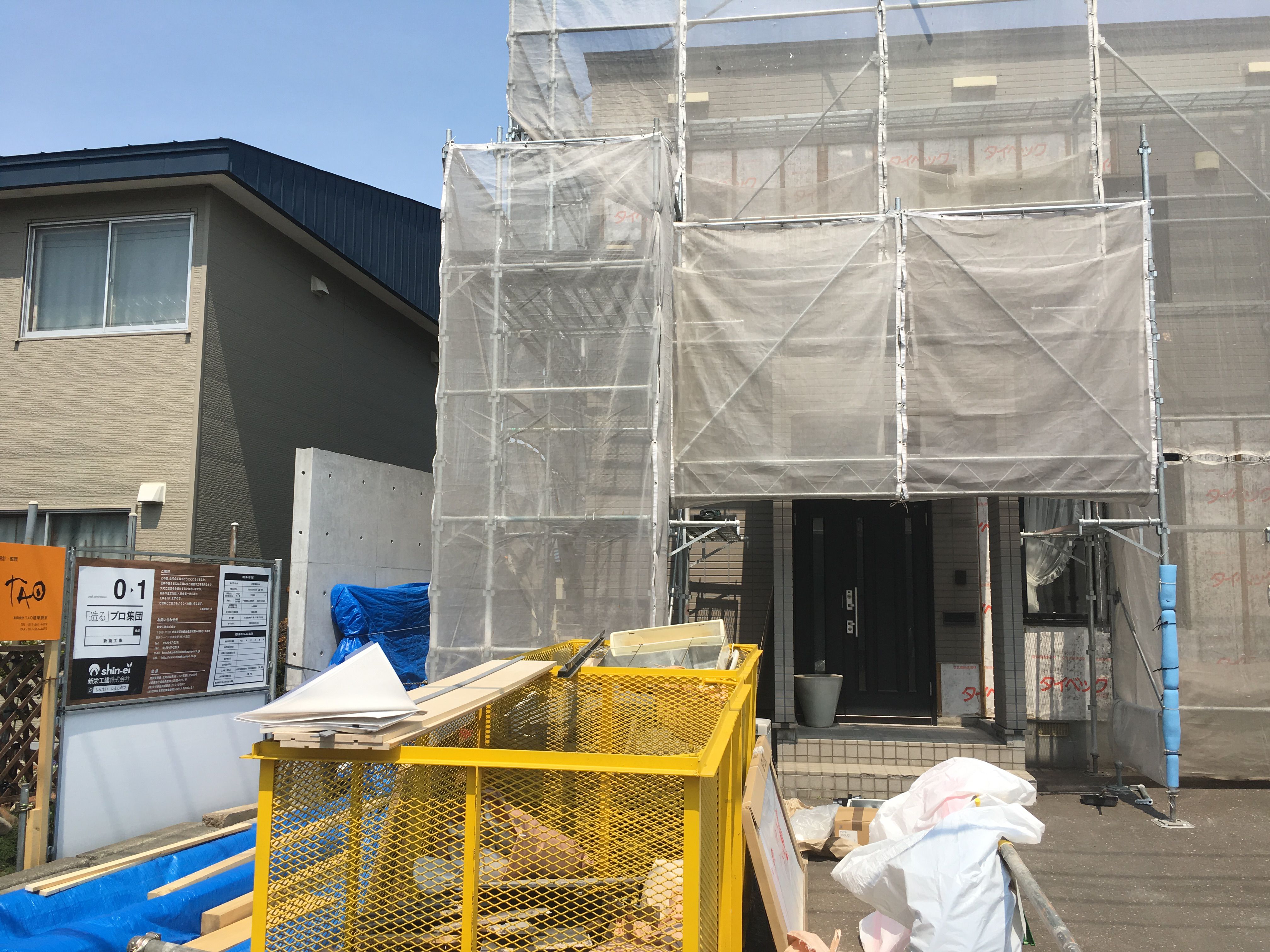 山鼻の住宅も工事がだいぶ進んできまして、外壁工事は終盤にかかっています。 外壁仕上げが塗り壁仕様で、現在その下地貼りまで完了した状態です! これからコーキング工事を行い、来週より左官塗りを始めていきま…